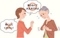 「ダメです」「やめてください」と制止するよりは、「座ってテレビでも見ましょう」などと提案して場面を切り替えましょう。わかりやすくやわらかな口調でゆっくり話しましょう。
