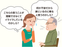 日ごろからよい家族関係を作り、たとえば好きな音楽をかけてリラックスしてもらったり、環境の急な変化を避けることで、本人が不安な気持ちを解消できるよう支えましょう。